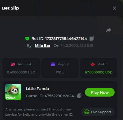 https://bc.game/sd/?sd=10KF79EECW6EC3 https://bc.game/sd/?sd=10KFUCU07BO4YB https://bc.game/sd/?sd=10KFVOTILB7CPF https://bc.game/sd/?sd=10KIHSYKVY9Q1F I had 949x on twerk with 0,10$ bet, but it shows only 1x payout... please check https://bc.game/sd/?sd=10KLBVBZM50QAB