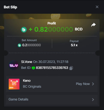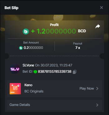Claasic Dice 10x - Done! https://bc.game/#/sd/11VJ56MWLI29FR Wheel 29,7x - Done! https://bc.game/#/sd/11VJ5Q72Z3ZSIN Roulette 36x - Done! https://bc.game/#/sd/11VJ5S8Y0FIEIR Crash 10x - Done! https://bc.game/#/sd/11VJ60FG8HRX9B Baccarat 9x - Done https://bc.game/#/sd/11VJ62N6P39EAJ Run away zombies 10x - Done! https://bc.game/#/sd/11VJ6I29KZD4M3 Enable 2FA for your BC.Game account + Verify E-Mail & Phone Number (If 2FA already activated, keep it activated) - Done! Plinko 76x - Done! https://bc.game/#/sd/11VQX4WTGEGE3J Lucky Easter 30x - Done! https://bc.game/#/sd/11VQYCWN8ZYXJZ Keno 50x - Done! https://bc.game/#/sd/11VQYI7T4ZCK1F