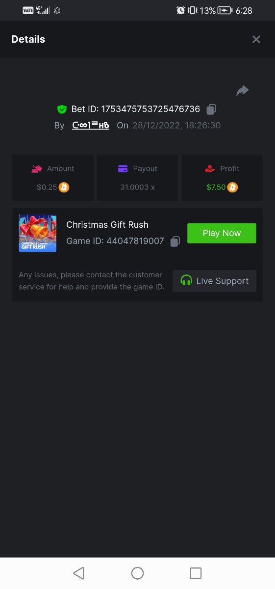 1. Christmas Gift Rush 31.0003x 1753475753725476736 https://bc.game/#/sd/1107XZ8WBT3XUB Happiest Christmas Tree 14.13x 1753476610303371904 https://bc.game/#/sd/1107XXI2D4GG7N Hot hot fruit 18x 1753477387113985287 https://bc.game/#/sd/1107XVDY0MIL8Z Lucky Fortune Cat 44.82x 1753477908303494663 https://bc.game/#/sd/1107XSFFR8TONN Naughty Santa 34.4x 1753478407838888455 https://bc.game/#/sd/1107XQMJBMDRF7