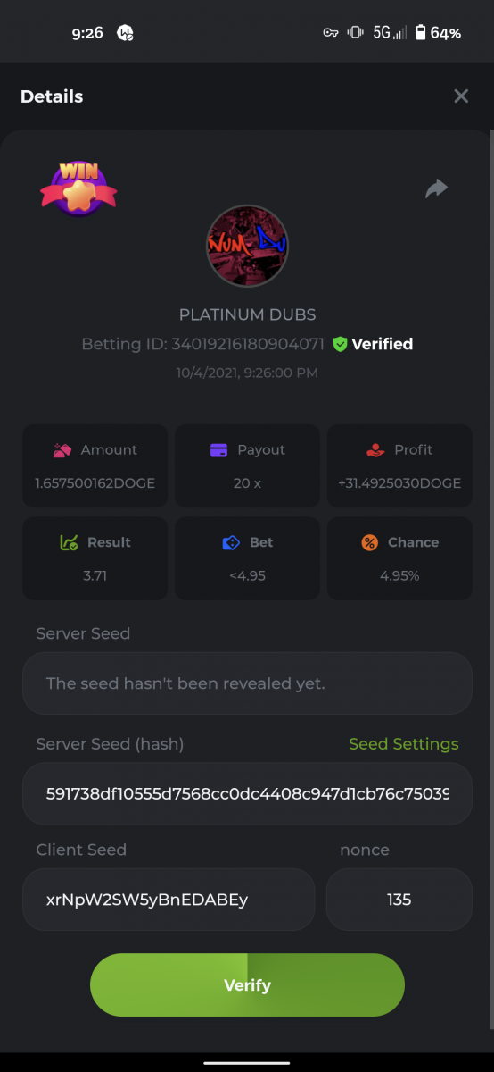 6. Betting ID: 39744648104640636 it would have been alot higher but my phone rotated and I lost 6 free spins they need to fix that shit