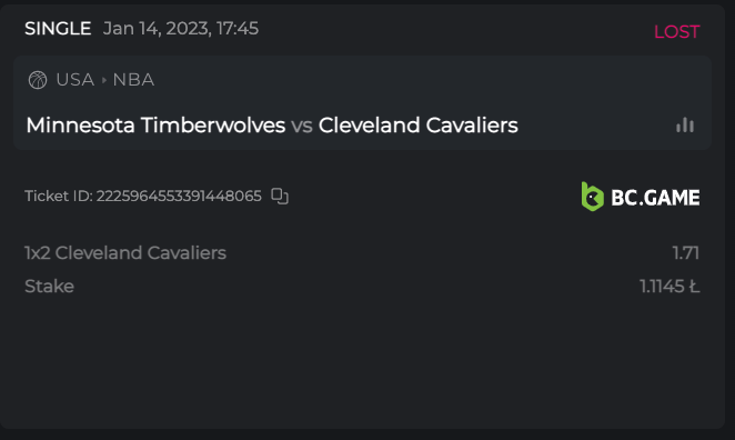 1. https://bc.game/sports?bt-path=%2F%3FbtBookingCode%3D9826C6B Ticket ID: 2238452732837114042
