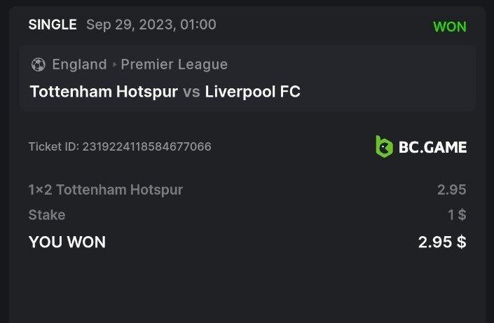 3. Hi boss! I wonder y I'm not included in payout I remember I opted in Premier league prediction Tottenham vs Liverpool and I won bet for Tottenham 1x2 @ 1$.