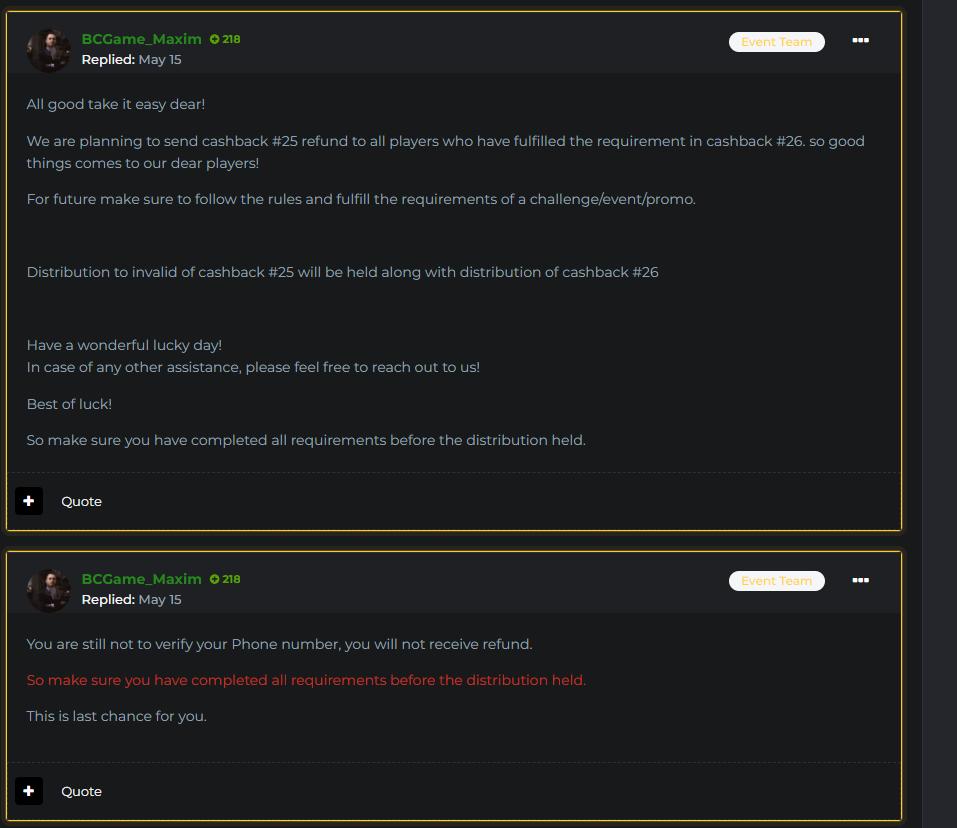 6. @BCGame_Maxim Hello, why can't you answer the inquiries about not returning the refund for sports guarantee 25???