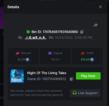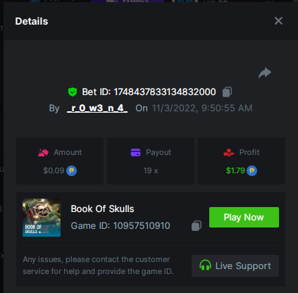100 Zombies - $0.20 https://bc.game/#/sd/10UXUX355ACBGZ Book of Vlad - $0.10 https://bc.game/#/sd/10UXH0IIU4SHZN Cyber Wolf - $0.10 https://bc.game/#/sd/10UXHER0L512XF Dia De Los Muertos - $0.10 https://bc.game/#/sd/10UXU3KFF380ER Hell Hot 20 - $0.20 https://bc.game/#/sd/10UXVEWG2EZ2MR Magnum Opus - $0.10 https://bc.game/#/sd/10UXW0KLVNPS7N Minotaur - $0.10 https://bc.game/#/sd/10UXHVHA1053PV The Vampires - $0.10 https://bc.game/#/sd/10UXT8CWULG2KZ Voodoo - $0.10 https://bc.game/#/sd/10UXT5SOO3KZ6B -