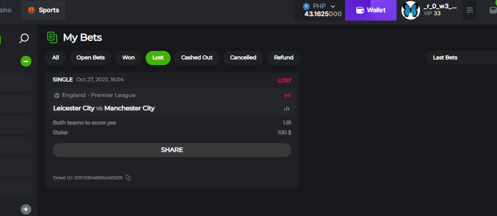 Ticket ID: 2197318148695400509 bad start of this week but its ok better luck next time. and always thankful to you Bil have a great betting guys. fight fight fight