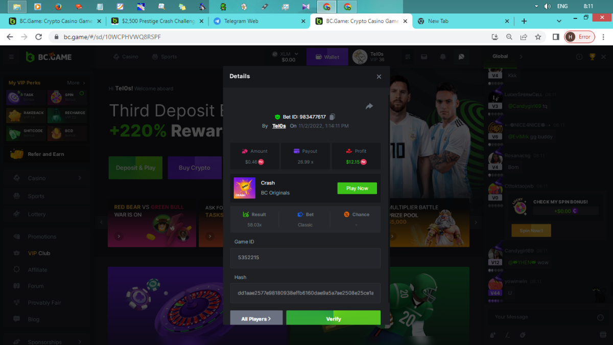 2. Created by : JackTheReaper Game : classic dice Hunt : hunt result 99.99 Payout : over 3300× Do not use JB or GB