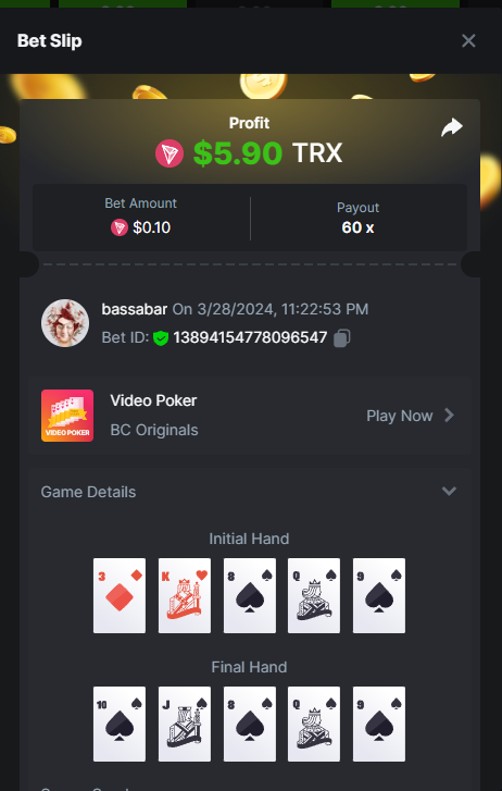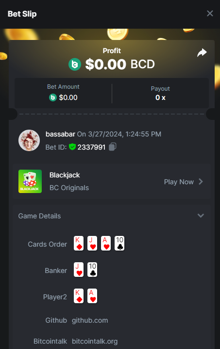 Hi @BCGame_Maxim, There is a task to hit a natural blackjack with red cards only. I hit it with a bet of 0.1$, though it shows not as a win or 0.1$ basebet. I checked with a few other people and they have the same issue of the bets not showing correctly. I tried different coins, show in different fiat valuta, etcetc, none of it helps to get it correct. My question is will this bet be accepted this way? And if not, what could I do to get it right? I posted the bill ID with the same gameid to show i placed it and won with 0.1$: Betlink: https://bc.game/#/sd/11VIK5D84FLS13 -