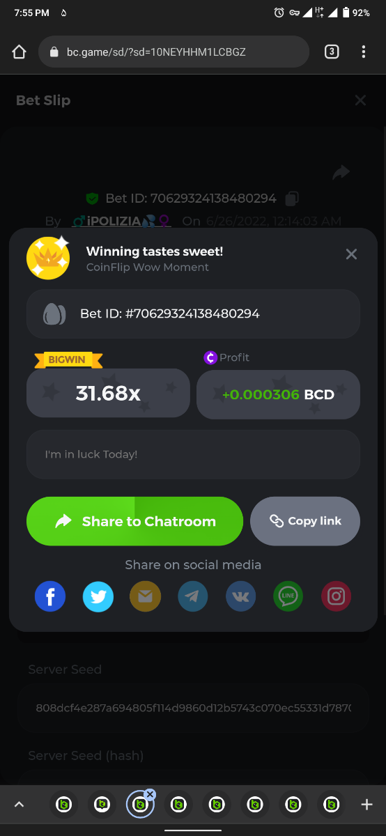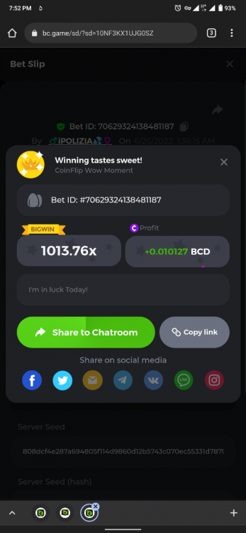 11. Easy Follow BCGame on Instagram (screenshot & IG username required). Post a photo or video on Instagram and tag BC.Game official profile (link to post & IG username required). Follow BCGame on Twitter (screenshot & twitter handle required). Like & Retweet the latest BC.Game Twitter post, tag at least 3 friends (link to post & twitter handle required). Follow BCGame on Facebook (screenshot & FB username required). https://bc.game/sd/?sd=10ICSTTR4V57V7 Win a Sports bet with minimum odds being 1.3x (singles only) 1$ base min amount. Get a minimum 20x multi on Amatic Lady Fruits 100 Easter slot. Get a minimum 30x multi on Gamomat Ramses Book Easter Egg slot. Enable 2FA for your BC.Game account (If it's already activated, keep it activated during event week). Medium Get a minimum 10x multi on Play&Go Easter Eggs slot . Win a bet in Roulette Single with betting on 0 only (36x). Get a 76x on Plinko. Get a minimum 60x multi on Wazdan Power of Gods™: Medusa Easter slot. Win a Sports bet with minimum odds of 2x (singles only) 1$ base min amount. Win a bet with Straight Flush in Video Poker (60x). https://bc.game/sd/?sd=10ICR69N0QBW9F Get a minimum 90x multi on Big Time Gaming White Rabbit slot. Win a bet by getting a natural Blackjack (A+K/Q/J/10) with only red cards in it. Get a minimum 100x multi on No Limit City Bonus Bunnies slot. Hard https://bc.game/sd/?sd=10ICUH0XTK4H03 Get a 420x on Plinko (14 rows, High risk). Win with a minimum 500x multi on Limbo. Get at least 300x multi on BGaming Hello Easter slot. Win with a minimum 999x on Crash. Get a minimum 100x multi on Pragmatic Chicken Drop slot. Get a minimum 100x multi on Push Gaming Fat Rabbit slot. Post a winning bet with 21 mines and 3 diamonds on Mines game, (569.25x). Win a bet on Keno Single by selecting numbers 10, 11, 12 and 13, High risk, (259.00x). Win a Sports bet with minimum odds of 10x (any bet allowed) 1$ base min amount.