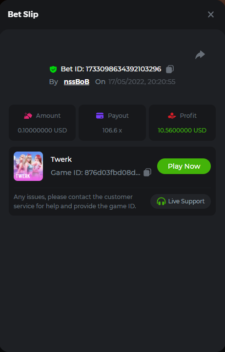 13. Twerk - 106.6x - Bet ID: 1733098634392103296 https://bc.game/sd/?sd=10KQ6EFJ1I9CSZ