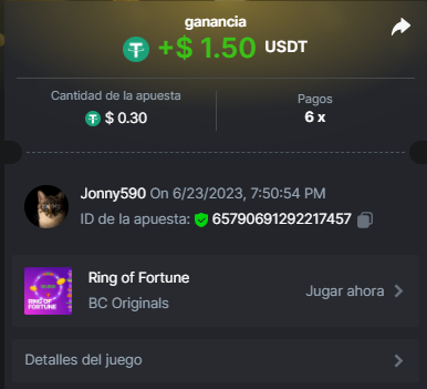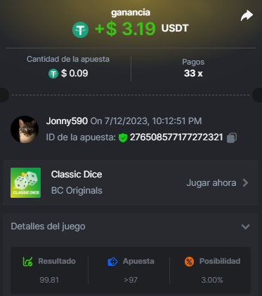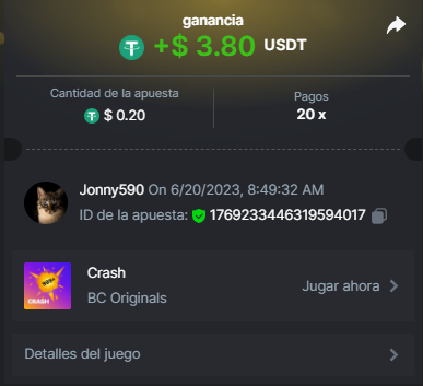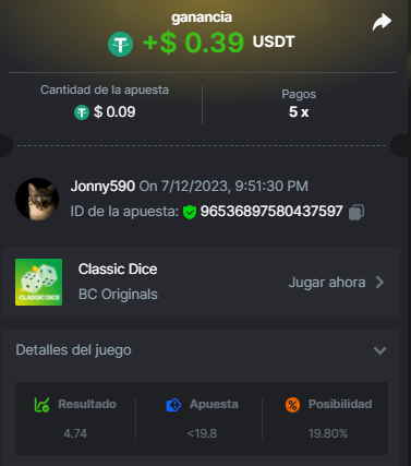 4. https://bc.game/#/sd/11INTM34DYRMDJ I bet 0.2 USDT, the page says it as 0.19