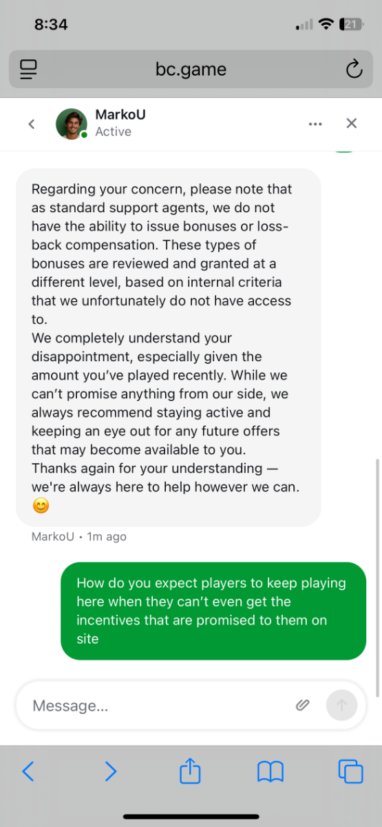 since they took away my host. I didn’t get a birthday bonus like I would normally. I used to get little bonuses here and there as an incentive to keep on playing at bc.game. Which honestly was awesome. But now… I get nothing. I’ve even deposited quite a bit lately and I don’t even get any lossback of the deposits that I have lost. Like what is the point of playing at bc game anymore. There is no incentives on playing there anymore. It’s such a shame. Truly.
