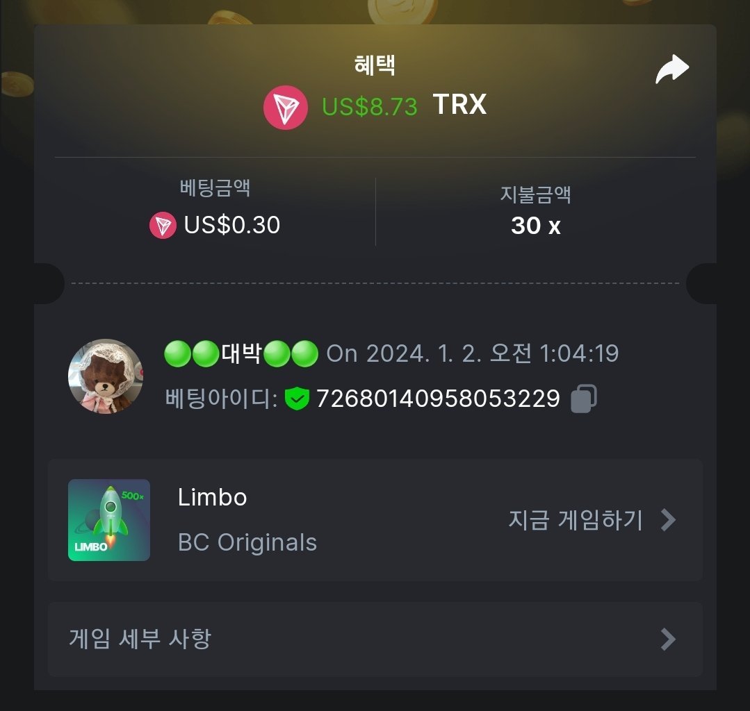 | 5.1 배 | 7 배 | 8 배 | 11 배 | 17배 | 26배 | 30 배 | 56배 | 63배 | 81.5배 | 100 배 | 180 배 | 250배 | 270배 | 350 배 | 450배 | 500배 | 600배 | 710배 | 800배 | 900배 | 1000배 ×5.1 https://bc.game/#/sd/11EUWBKTQMBKVB ×7 https://bc.game/#/sd/11EUQXHRB86AKZ ×8 https://bc.game/#/sd/11EUR9CQ9KUCK3 ×11 https://bc.game/#/sd/11EUU8TRNCWV83 ×350 https://bc.game/#/sd/11EUUGVWM5EP9J ×30 https://bc.game/#/sd/11EUUT2FBZ4KMF ×100 https://bc.game/#/sd/11EUW1HU9QCCIV ×180 https://bc.game/#/sd/11EUWXQ0IFQVWZ ×81.5 https://bc.game/#/sd/11EUYC0FZZ7T3N