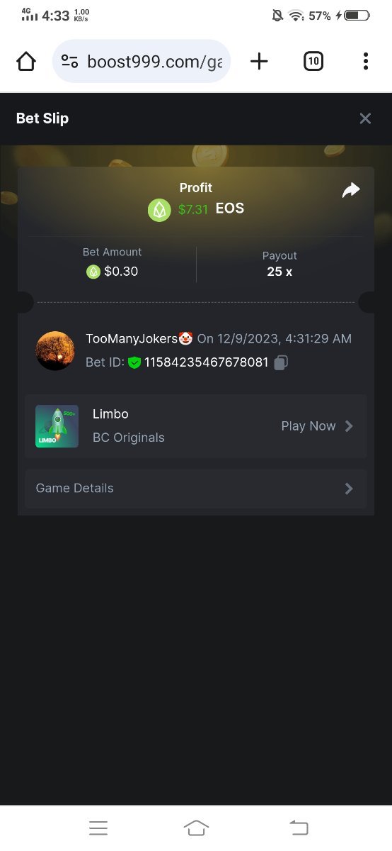 4. Game Hash Dice Result 72072 Minimum payout 100 x