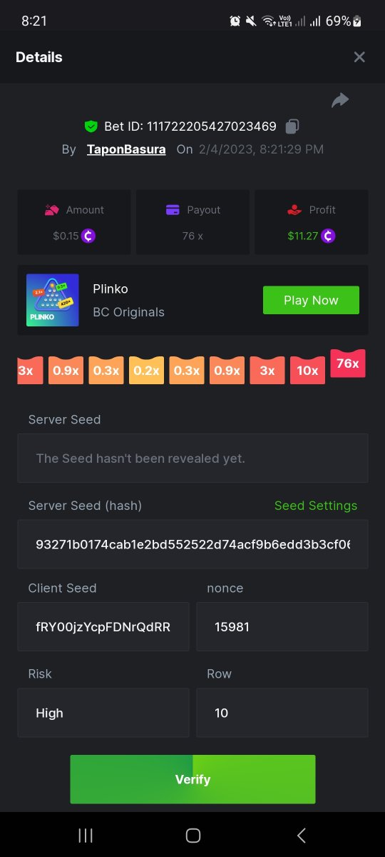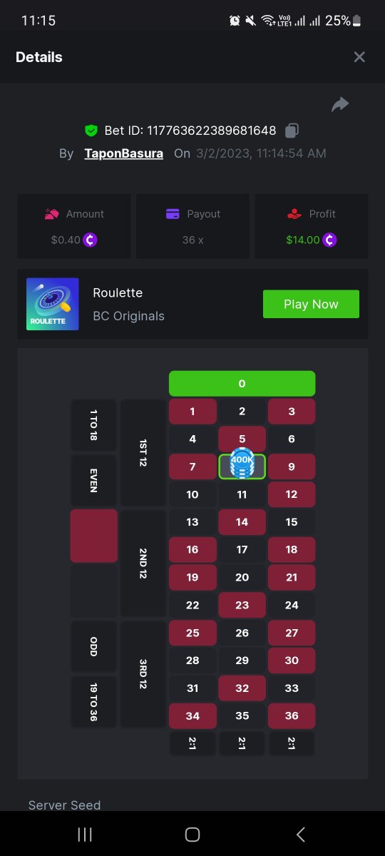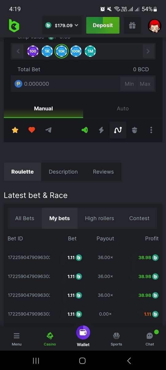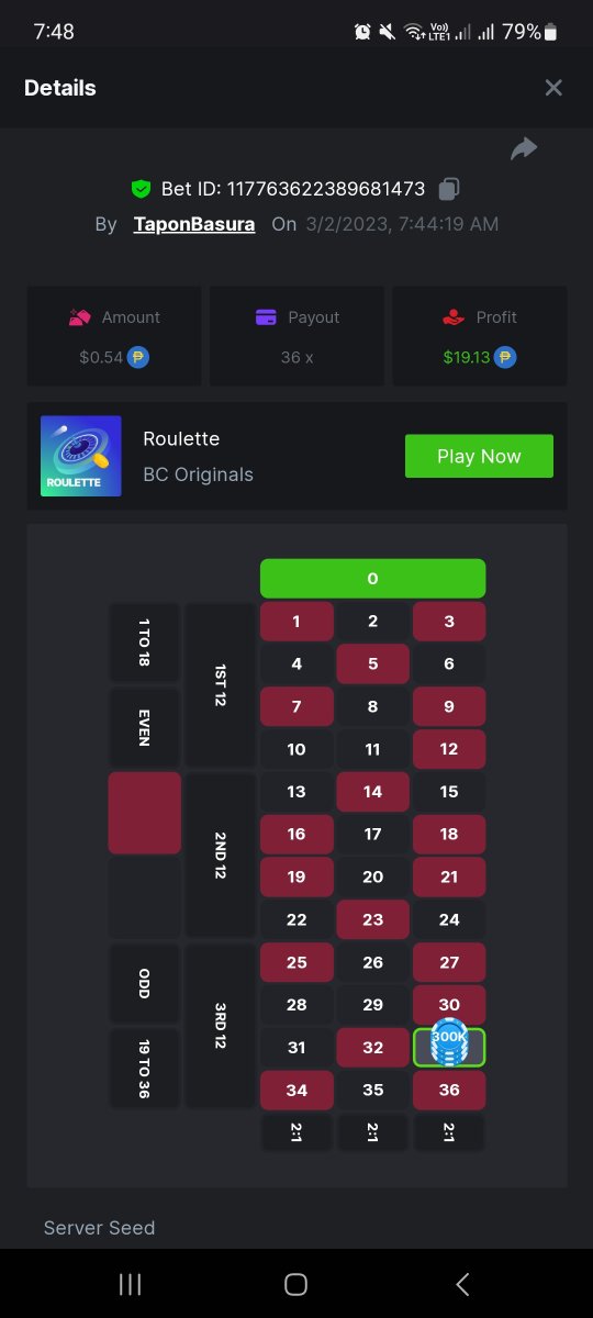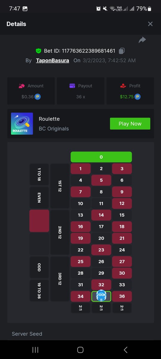 3. Event details: Hunt 36x in roulette 3 in a row Roulette: 36x Hunt: 36x 3 in a row. Place a bet only in 1 number of your choice Minimum bet: 0.01 $BC Rewards: 1st ----- $10 BCD 1st ----- $8 BCD 1st ----- $5 BCD 3rd to 10th ---- 2 BCD each Rules/Guidelines: The first 10 users to submit 3 game links with 36x winning bets, along with the details(UID, Screenshot in chat room or socials, will be the winners!