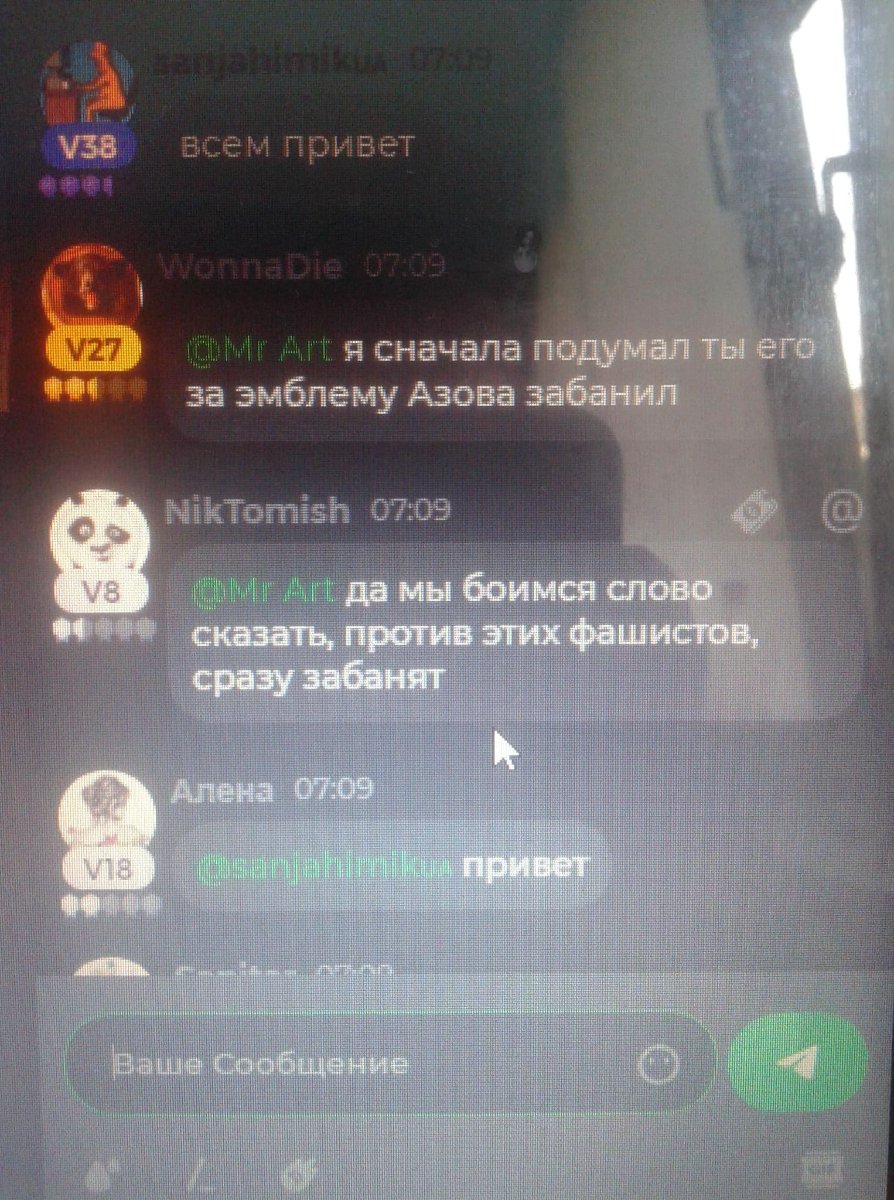 I was blocked by the administrator for putting up in the chat Nazi gifs that were made from the very breech .He from Russia I did not block my friends from ukraine and gave me a ban.I ask you to solve this question.