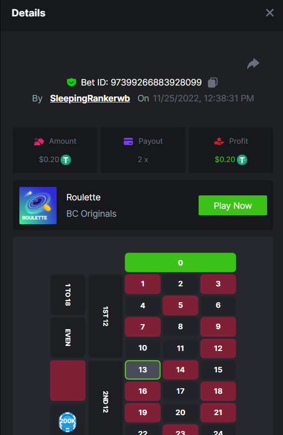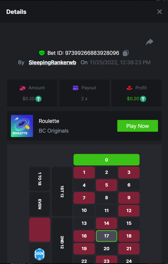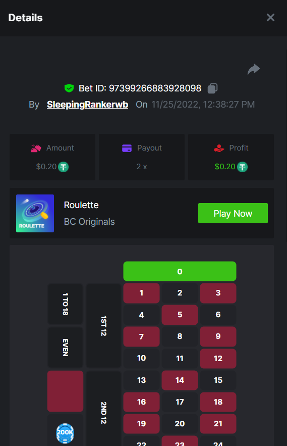 • Rank will be determined by the largest amount of consecutive bets, the longest sequence will be in 1st place and successively.