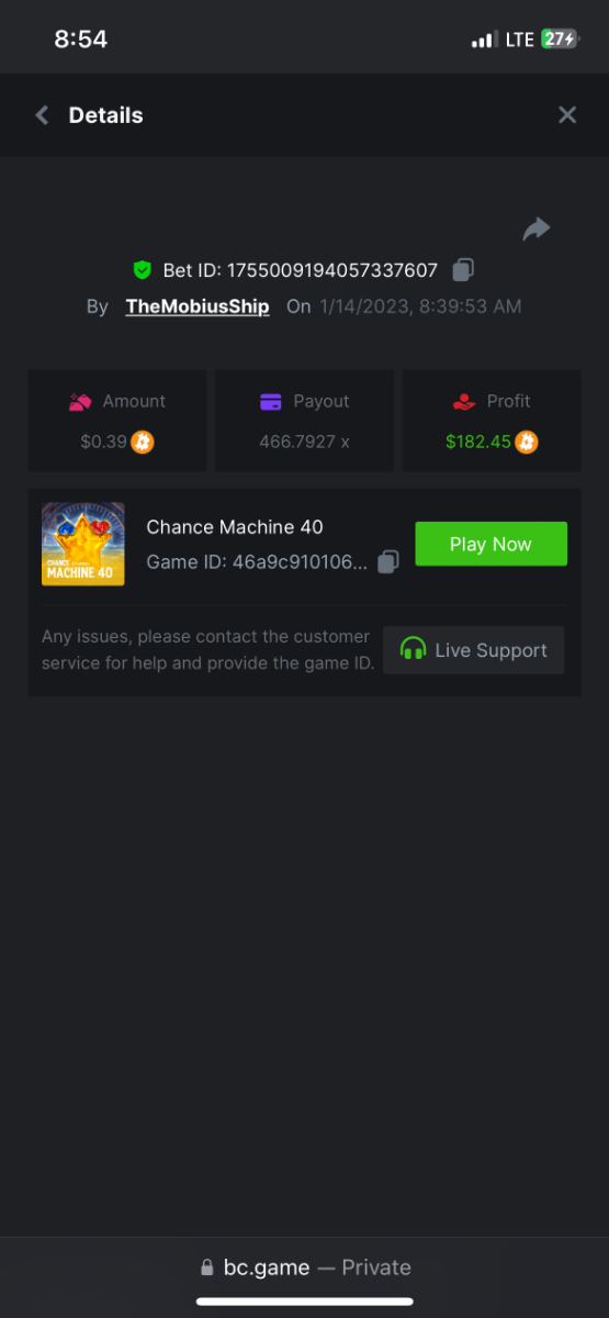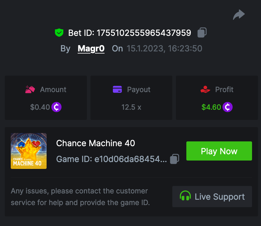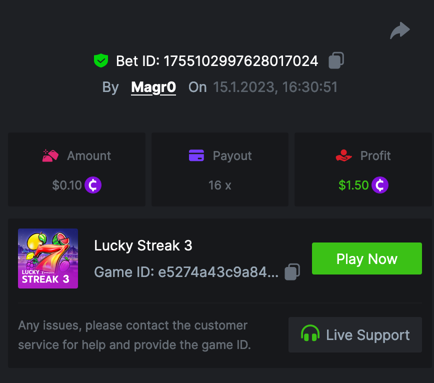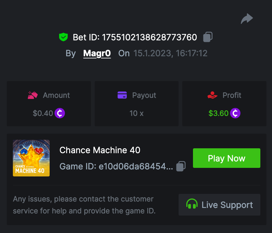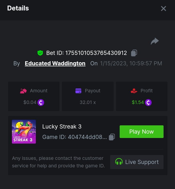 • In the same post, upload a screenshot of your win by clicking the game ID WITH VIEW IN USD mode ENABLED (accessible at the bottom of dropdown menu for your wallet up top, and Submit Reply. Done! This way, we can ensure that your bet indeed met the minimum requirement at the time of placing it: