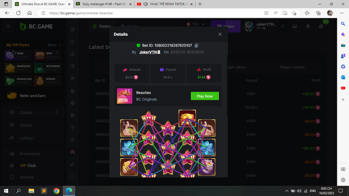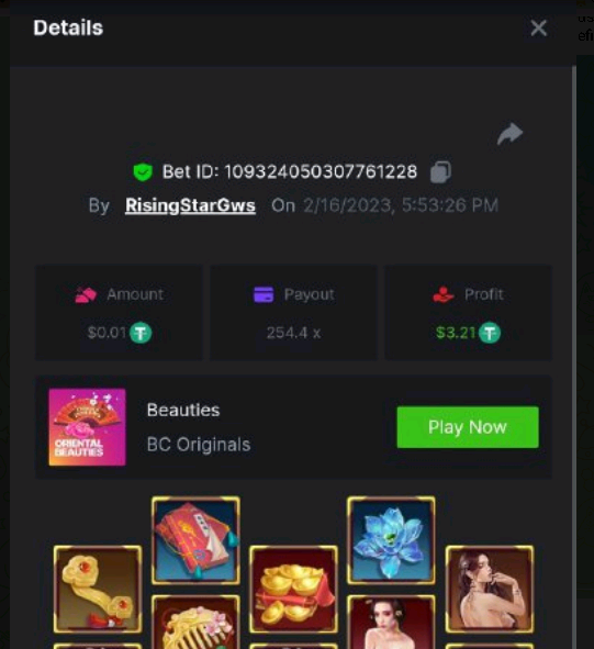 Maksypro Posted February 16, 2023 Share Posted February 16, 2023 (edited) Read Carefully Before Start To Hunt Daily Challenges #149 ORIENTAL BEAUTIES Hunt : Win the highest pay out Min Payout requirement 50x Min Level 4 ๏ธDuration Starting : Now End time : 23.59 UTC Time How to Join? Make screenshot + paste your bet link + UID or Profile link Mini bet amount - 0.01$ Any coin allowed Reward Prizes 1st Place.....$7 BCD 2nd Place.....$5 BCD 3rd Place.....$4 BCD 4th Place.....$3 BCD 5th Place.....$2 BCD ๐ต Winners will be announcing next day after Roll Point! Edited February 16, 2023 by Maksypro Link to comment Share on other sites More sharing options...