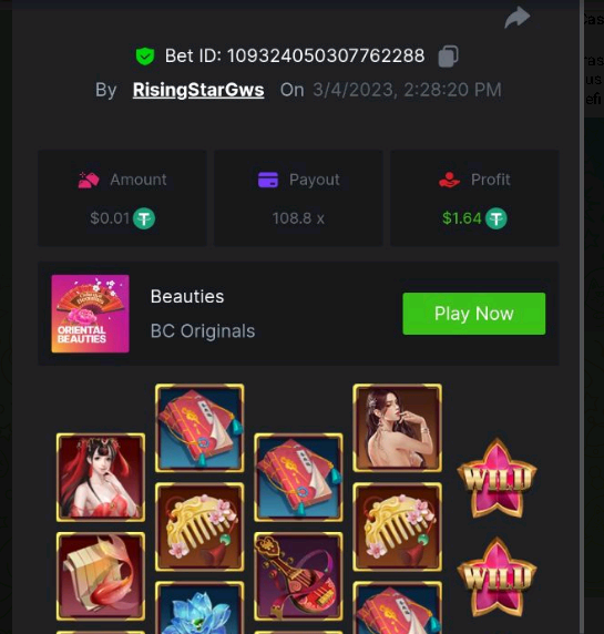 AlexisHuerta Posted March 4, 2023 Share Posted March 4, 2023 Like No entiendo Like 16 hours ago, Maksypro said: Read Carefully Before Start To Hunt Daily Challenges #164 ORIENTAL BEAUTIES Hunt : Win the highest pay out Min Payout requirement 50x Min Level 4 ️Duration Starting : Now End time : 23.59 UTC Time How to Join? Make screenshot + paste your bet link + UID or Profile link Mini bet amount - 0.01$ Any coin allowed Reward Prizes 1st Place.....$7 BCD 2nd Place.....$5 BCD 3rd Place.....$4 BCD 4th Place.....$3 BCD 5th Place.....$2 BCD 🏵 Winners will be announcing next day after Roll Point! Link to comment Share on other sites More sharing options...