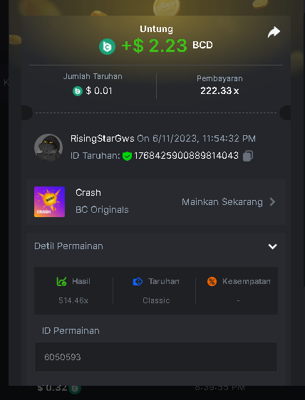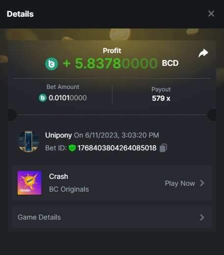 Maksypro Posted June 11, 2023 Share Posted June 11, 2023 Read Carefully Before Start To Hunt Daily Challenges #263 CRASH Hunt : Win the highest pay out Min Payout requirement 80x Min Level 4 ๏ธDuration Starting : Now End time : 23.59 UTC Time How to Join? Make screenshot + paste your bet link + UID or Profile link Any coin, with min bet 0.01 USD is allowed (jb/bb/bcl not allowed) Reward Prizes 1st Place.....$7 BCD 2nd Place.....$5 BCD 3rd Place.....$4 BCD 4th Place.....$3 BCD 5th Place.....$2 BCD ๐ต Winners will be announcing next day after Roll Point! 2 Link to comment Share on other sites More sharing options...