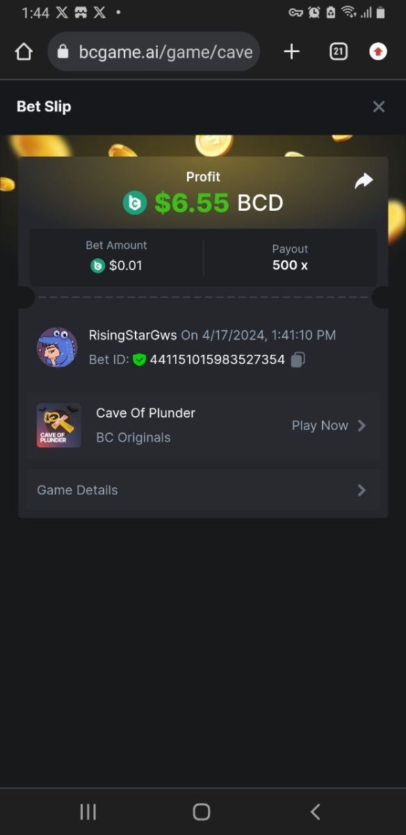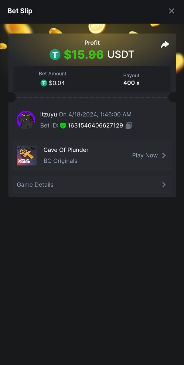 Moderator Giandreas Posted April 17, 2024 Moderator Share Posted April 17, 2024 Read Carefully Before Start To Hunt Forum Daily Challenges #573Hunt : Cave of Plunder Win the highest pay out Min Payout : 17x Min Level 10️Duration Starting : Now End time : 23.59 UTC Time How to Join? Make screenshot + paste your bet link + UID or Profile link Any coin, with min bet 0.01 USD is allowed (jb/bb/bcl not allowed)Reward Prizes 1st Place.....$7 BCD 2nd Place.....$5 BCD 3rd Place.....$4 BCD 4th Place.....$3 BCD 5th Place.....$2 BCD 🏵 Winners will be announcing next day after Roll Point! 1 Link to comment Share on other sites More sharing options...